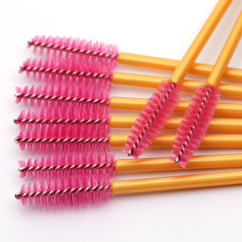 Disposable Nylon Eyelash Brush Mascara Wands – Gold Handle